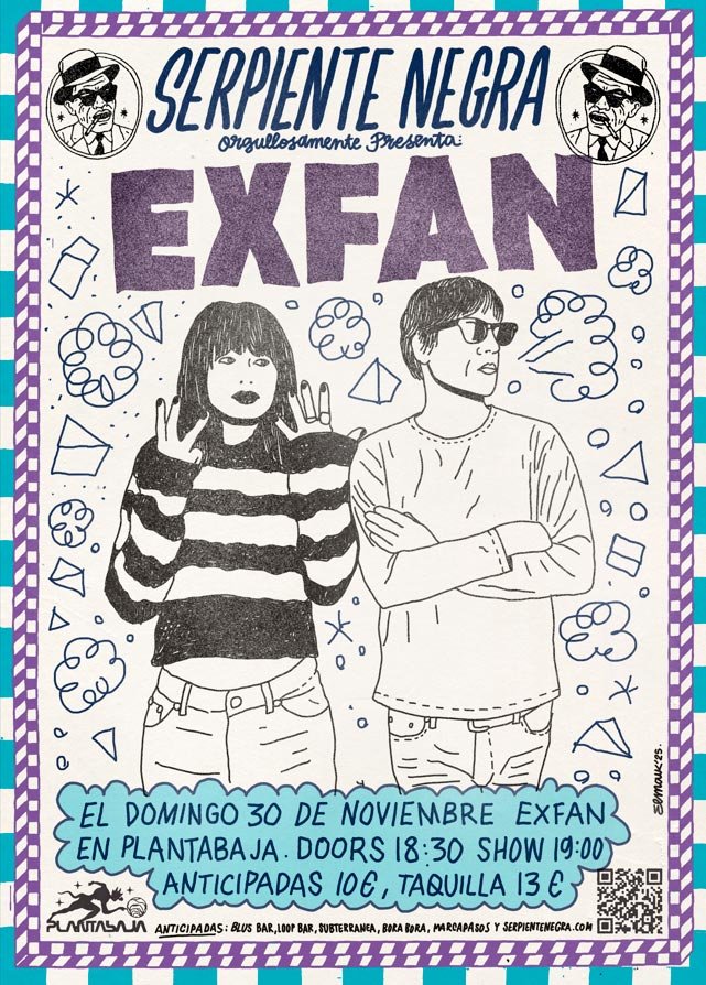 Exfan es un dúo castellonense que presenta un rock and roll crudo, con potentes ritmos, ruido salvaje de guitarras reverberantes, y melodías pop envenenadas. El grupo está formado por Pat Escoin y Tommy Ramos dos músicos de la escena castellonense bien conocidos por sus anteriores formaciones, Pat en los míticos Romeos y Lula, Tommy en Depressing Claim Suzy y los Quattro y Los Rectivos.