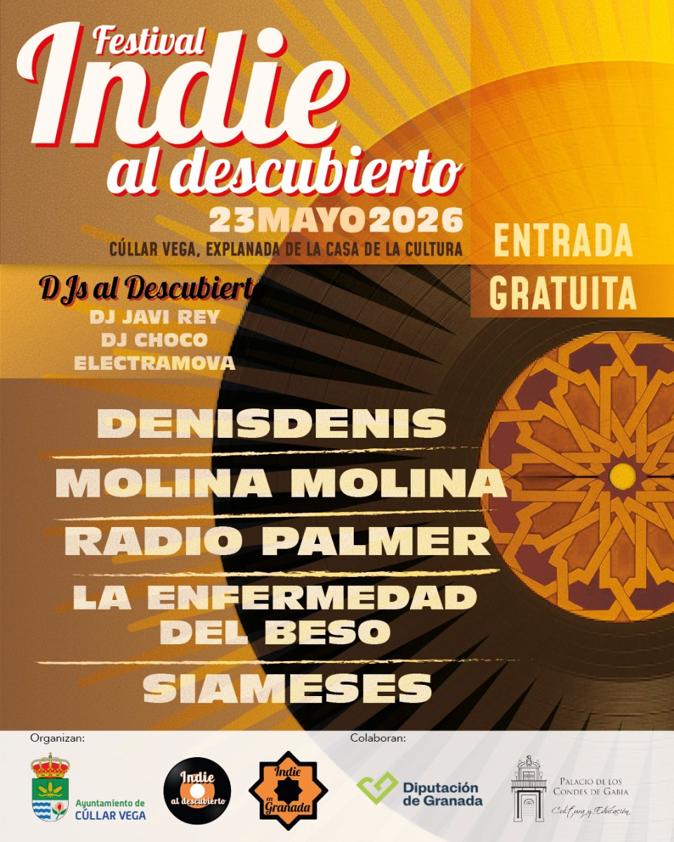 El mapa muestra los mejores precios de los alojamientos disponibles en Booking y otras plataformas alrededor de Casa de la Cultura (Cúllar Vega), lugar del Indie al descubierto. concierto de Denisdenis + Molina Molina + Radio Palmer + Siameses + La enfermedad del beso el Sabado 23 de Mayo de 2026