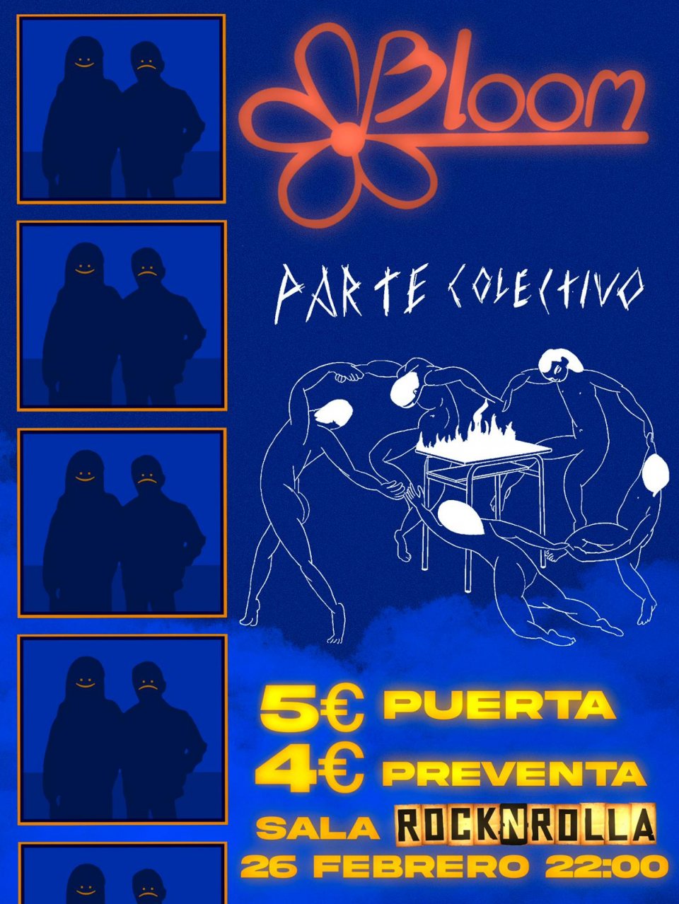 Bloom + Parte colectivo Evento concluido Jue 26 Feb 22:00h Rocknrolla Granada Ver mapa, ficha y próximos conciertos en Rocknrolla
