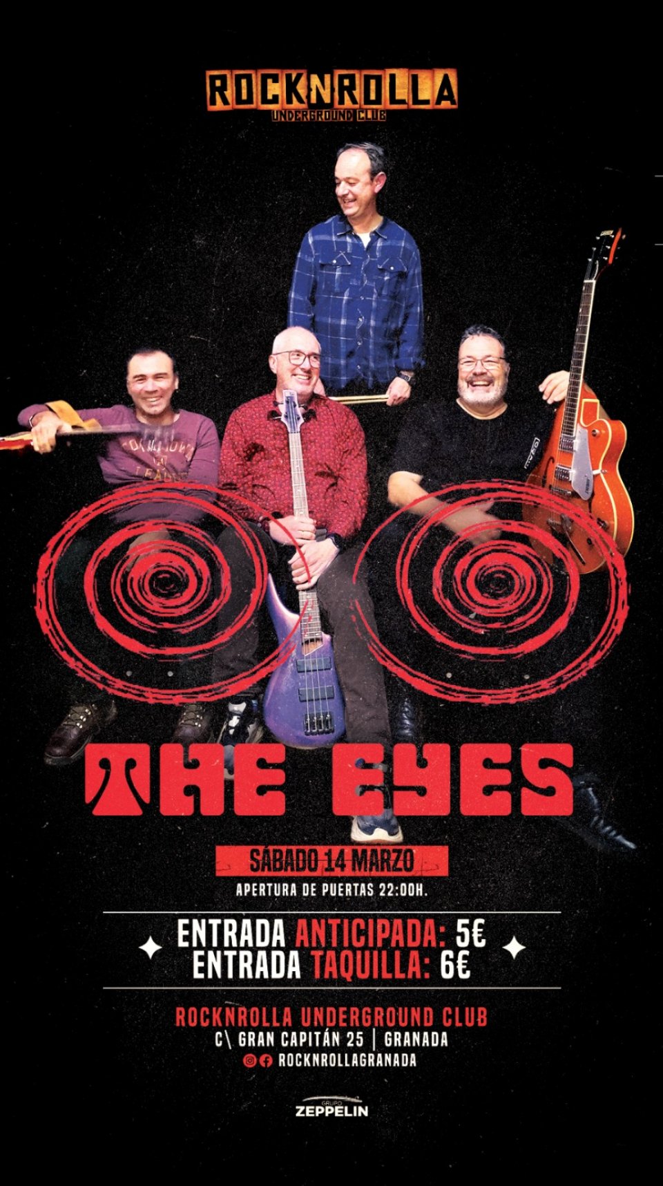 El mapa muestra los mejores precios de los alojamientos disponibles en Booking y otras plataformas alrededor de Rocknrolla (Granada), lugar del concierto de The Eyes el Domingo 19 de Abril de 2026