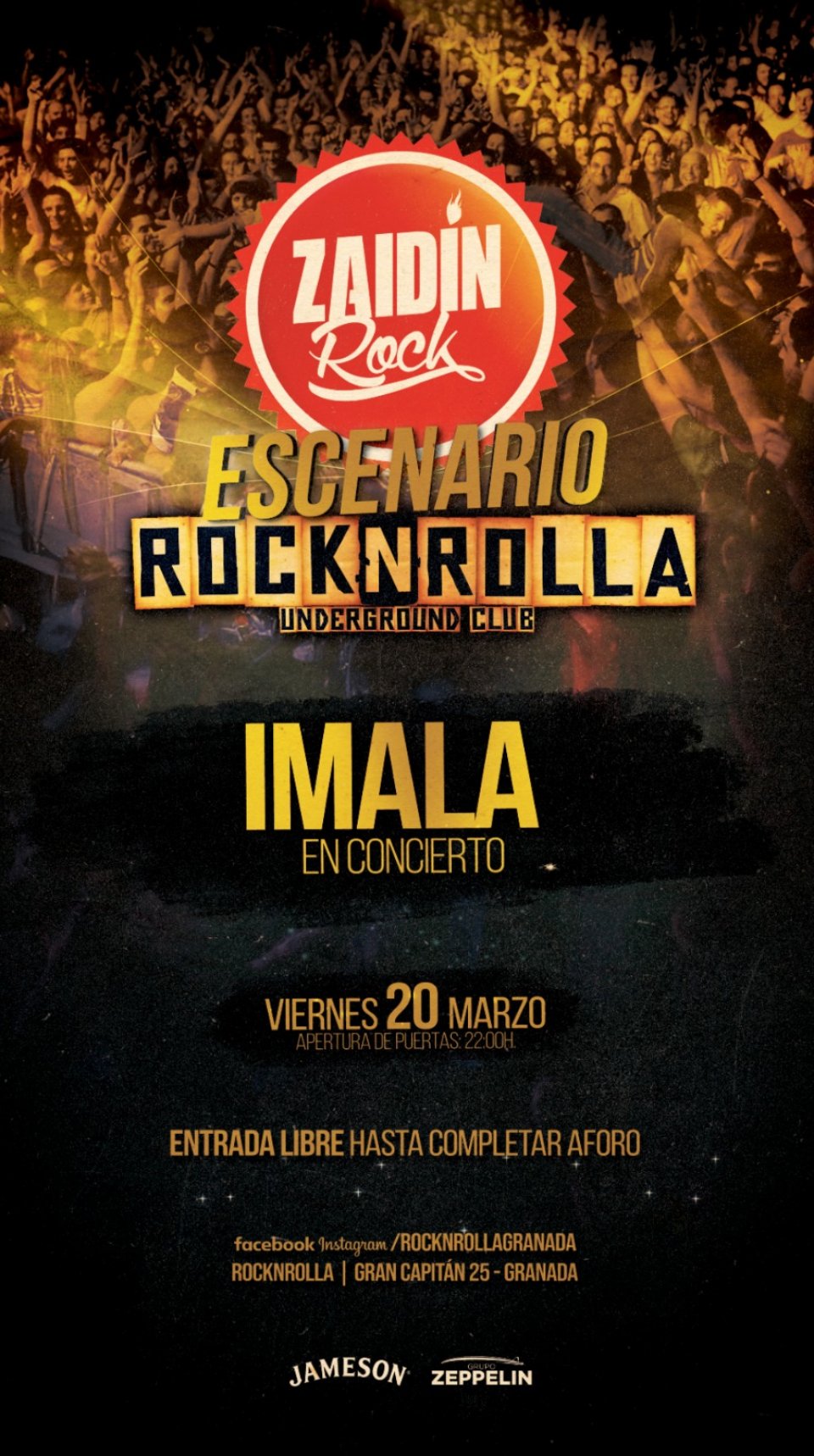 El mapa muestra los mejores precios de los alojamientos disponibles en Booking y otras plataformas alrededor de Rocknrolla (Granada), lugar del concierto de Imala el Viernes 20 de Marzo de 2026