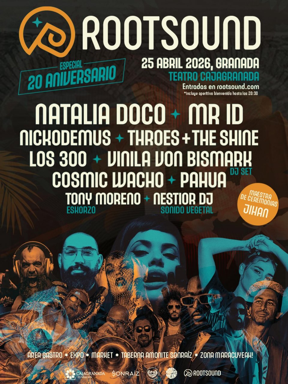 En 2026 Rootsound celebra 20 años impulsando desde Andalucía la música y cultura de raíz. Para conmemorarlo, el 25 de abril el Teatro CajaGranada acoge una gran noche de música global con artistas internacionales que representan la diversidad sonora contemporánea.