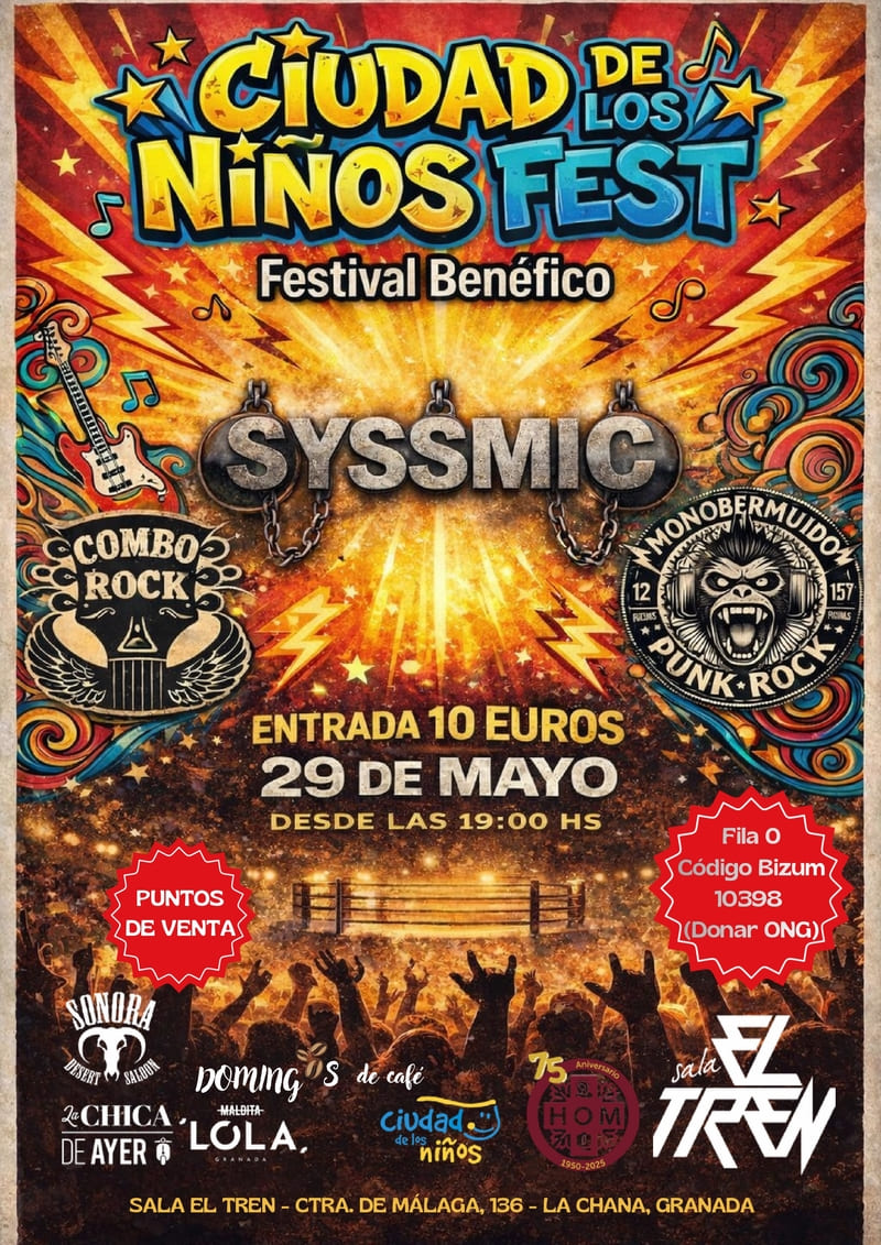 El próximo 29 de mayo la música se une a una gran causa en Sala El Tren con Ciudad de los Niños Fest, un festival solidario para apoyar a Ciudad de los Niños.