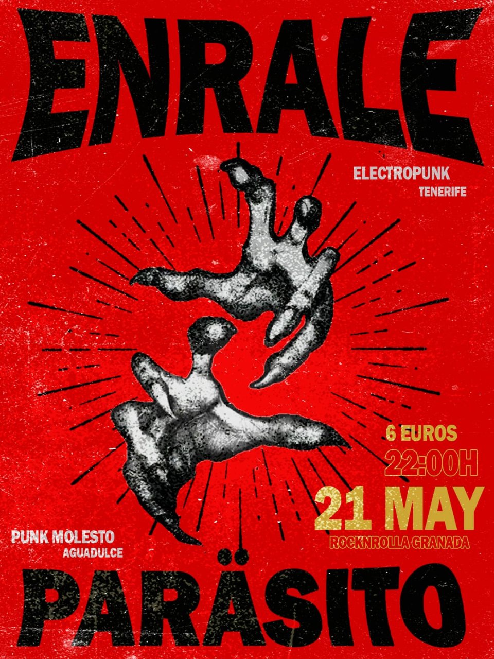 Enrale + Paräsito Jue 21 May 22:00h Rocknrolla Granada Precio: 6€ Taquilla. Ver mapa, ficha y próximos conciertos en Rocknrolla Compartir: