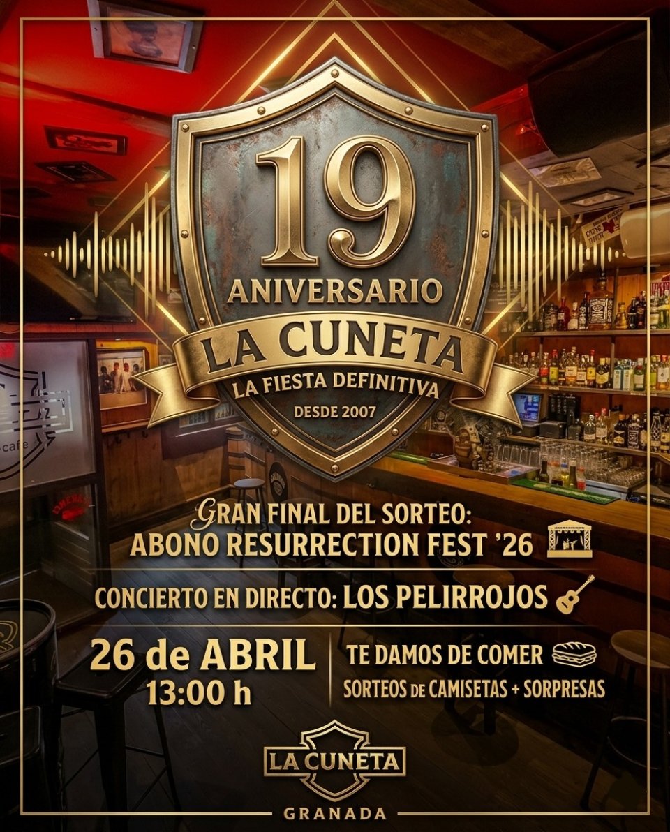 El mapa muestra los mejores precios de los alojamientos disponibles en Booking y otras plataformas alrededor de La Cuneta (Granada), lugar del concierto de Los Pelirrojos el Domingo 26 de Abril de 2026