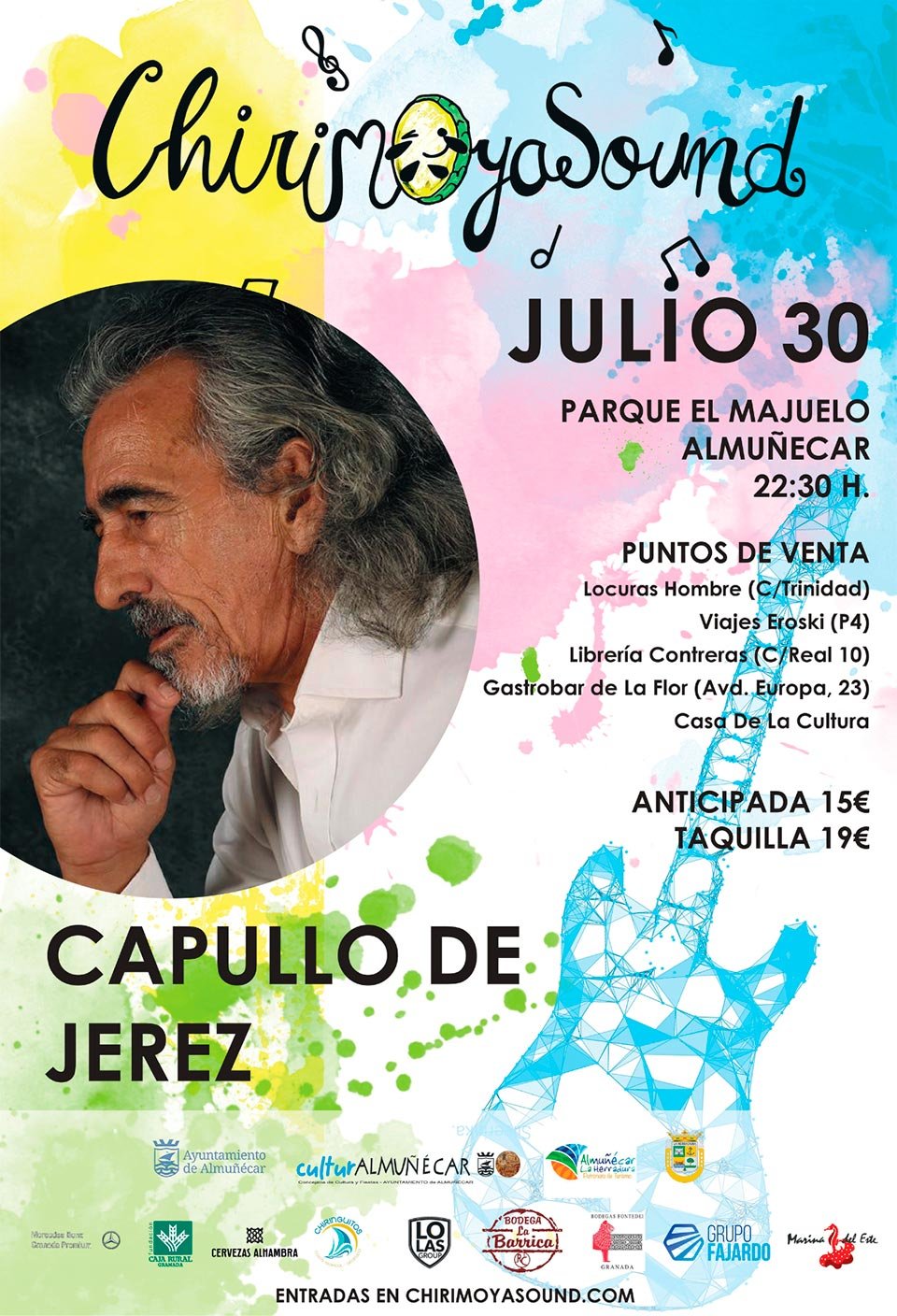 El mapa muestra los mejores precios de los alojamientos disponibles en Booking y otras plataformas alrededor de Parque del Majuelo (Almuñécar), lugar del Chirimoya Sound. concierto de Capullo de Jerez el Sabado 4 de Abril de 2026